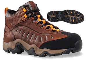 The Timberland Pro Steel Toe Leather Hiking Boots Mudslinger Mid 60196 is a solid boot that won’t let you down. These boots are sturdy, with a full grain leather upper and will keep you safe on the trails with their contoured thermoplastic urethane shock diffusion plate shank system. They also have Timberland’s signature Timberland Pro slip resistant rubber outsole that will give you excellent traction on the trail. A steel toe that has an ASTM F2413-05 Safety Toe EH rating also keeps your toes protected from falling or rolling objects. On the inside, these boots feature an anti-microbial lining to keep your feet cool and an OrthoLite footbed with an Agion anti-microbial cover. They also have a compression molded EVA midsole for comfort. These great boots are available in sizes 7 to 15 in medium and wide widths for only $93.99.