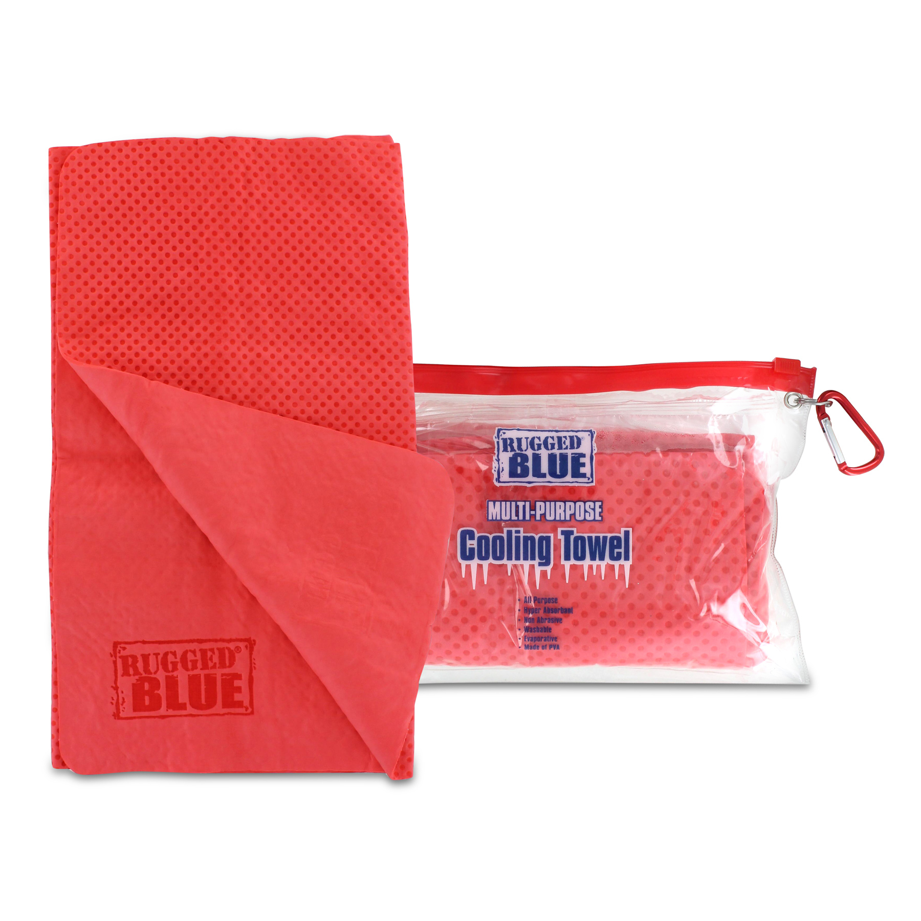 Introducing the New Rugged Blue Cooling Towel with Carrying Case for only $6.95! Stay cool with these reusable Rugged Blue Cooling Towels; they are naturally refreshing, made of PVA material that holds water and stays cool for hours. Cooling towels are great for anyone who plays sports, especially golf, and those who work outdoors during hot, dry days. Try one in each color: blue, green, brown, and red. Each towel comes with a durable PVC carrying case with color-matched car