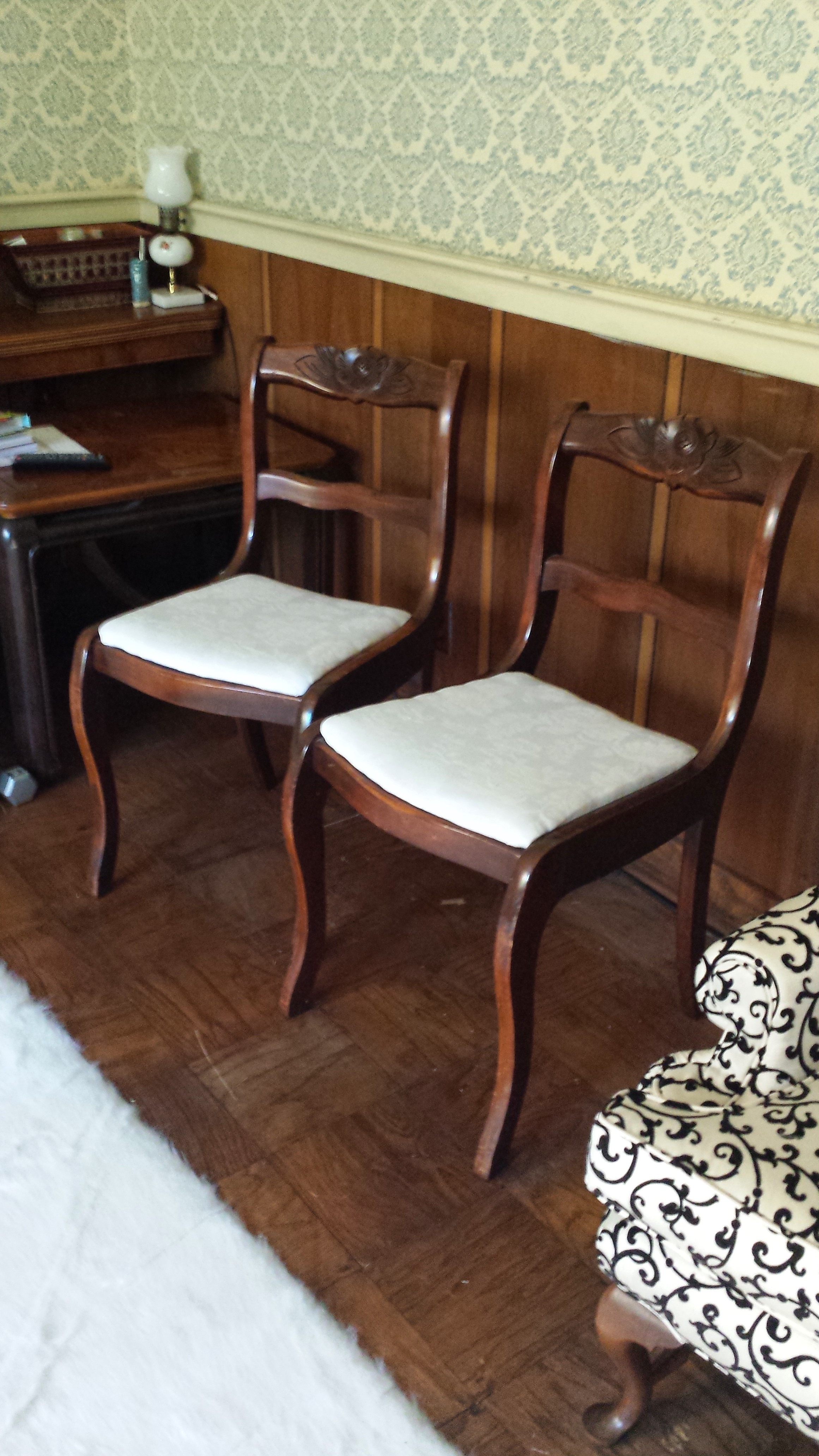 Sunday my mom came out and reupholstered four occasional chairs while I deglossed the laundry room. I am including a photo because they look so nice and I am glad she did this for me.